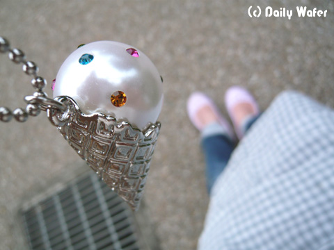 夏のバーゲンで、アイスクリームみたいなネックレス買いました。